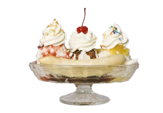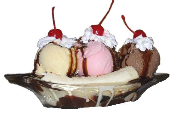 A traditional banana split is made by splitting a single banana and placing each half on either side of the dish. Three scoops of ice cream (typically vanilla, chocolate or strawberry) are placed in between the bananas. It is then topped with whipped cream, cherries, and nuts (Corris).